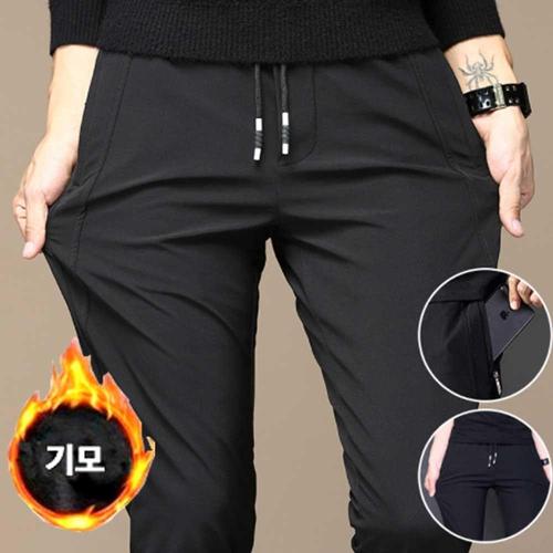 [셀럽하우스]남자 MVSI0089 겨울 코디 아빠 바지 기모 스판 검정 밴딩 팬츠