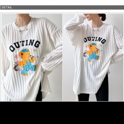[옷자락] 남녀 공용 아웃스티치 프린트 오버사이즈 봄철 긴팔 티셔츠 맨투맨