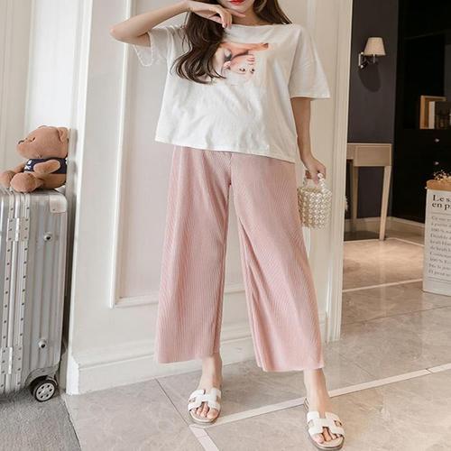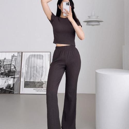 [다잇템]여자 나팔 크롭티 SS 아코디언 롱팬츠 세트 (10436991A)