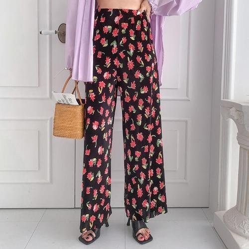 [다잇템]여자 아코디언 꽃무늬 큰사이즈 비치룩 바지 (10368713A)