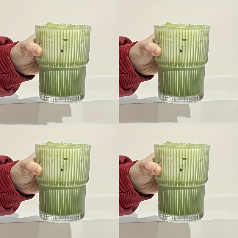 TEMU 고품질 텀블러 4pcs 세트 - 대용량, 세로 줄무늬 디자인, 투명 유리, 손세척 전용, 재사용 가능한 다목적 음료용품, 아이스 아메리카노와 라떼에 이상적, 스타일리시한 음료를 위한 필수 아이템, 재활용 가능, 완벽한 휴일 선물, 음료 필수품,세련된 유리제품,현대적인 음료용품,내구성 있는 유리제품,다목적 컵,사무용품 필수품