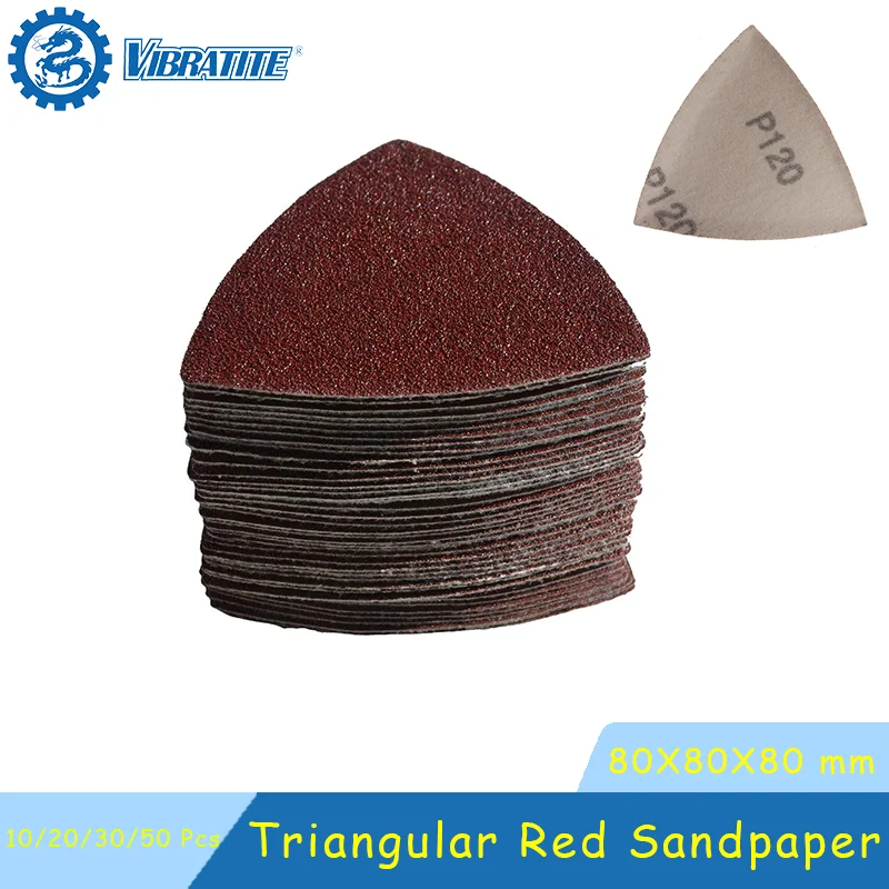 80X80X80mm 삼각형 빨간색 사포 10/20/30/50개 후크앤루프 모듬 60-320 그릿 목재 석고 금속 석재 연마용