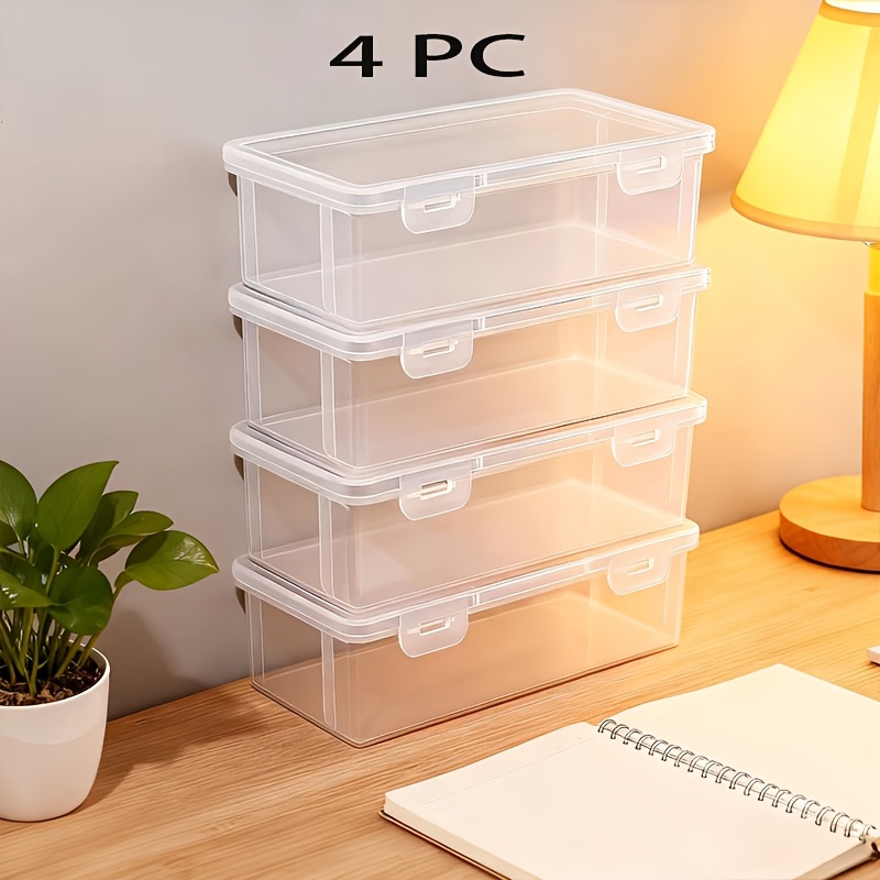 TEMU 안전 뚜껑이 있는 대형 투명 보관 상자 4개 | 사무실, 학교 용품, 마커, 연필, 공예 보관에 적합, 쌓을 수 있음, 명확하게 보임, 단단하게 닫힘, 가벼운 디자인, 쉽게 볼 수 있는 재질, 플라스틱 재질