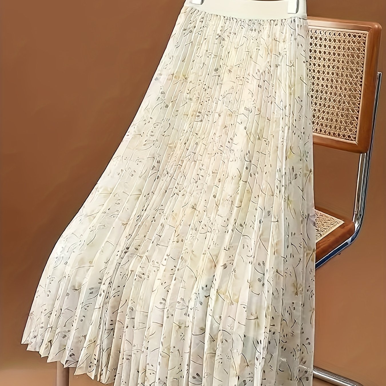 TEMU 새로운 여름 여성용 스타일리시 프린트 하이웨이스트 플리츠 캐주얼 스커트, 곡선형 밑단
