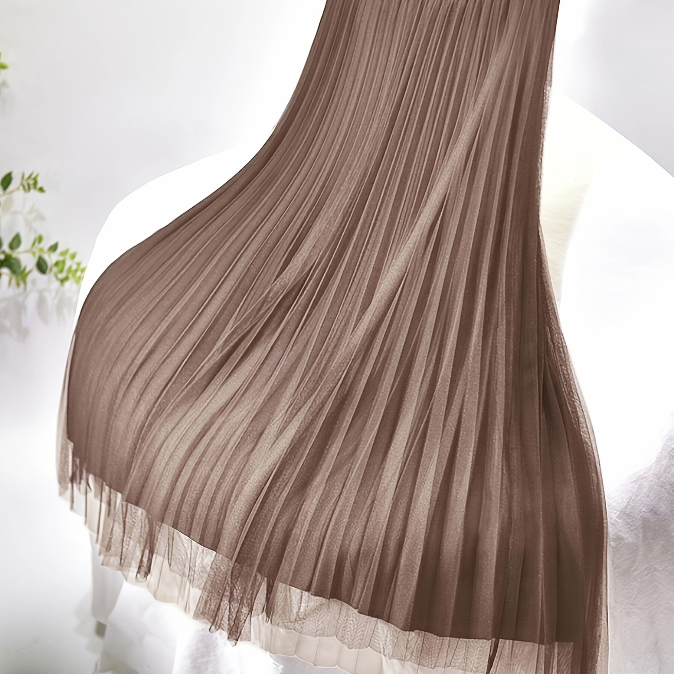 TEMU 메쉬 미디 스커트 여성용 A라인 플리츠 탄성 허리 여성
