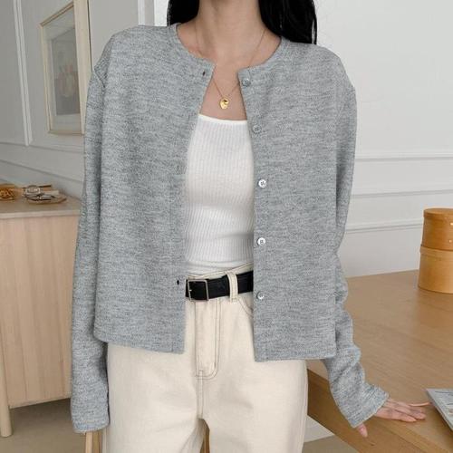 루즈핏 라운드넥 니트 스웨터 2025 신상 여성용 울트라 와이드 골지 밑단 롱 슬리브 숏 가디건