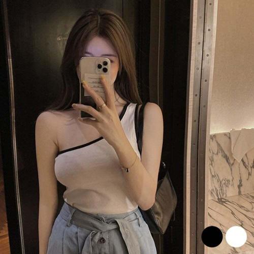 [오너클랜]인기상품 여성용 언발란스 숄더 배색 나시 데일리 이너웨어 티셔츠 [WFLLKTV_260305]