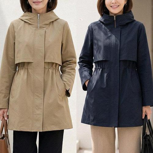 ORZQU 봄가을 여성 트렌치코트 루즈핏 중년 엄마 후드 하프 코트