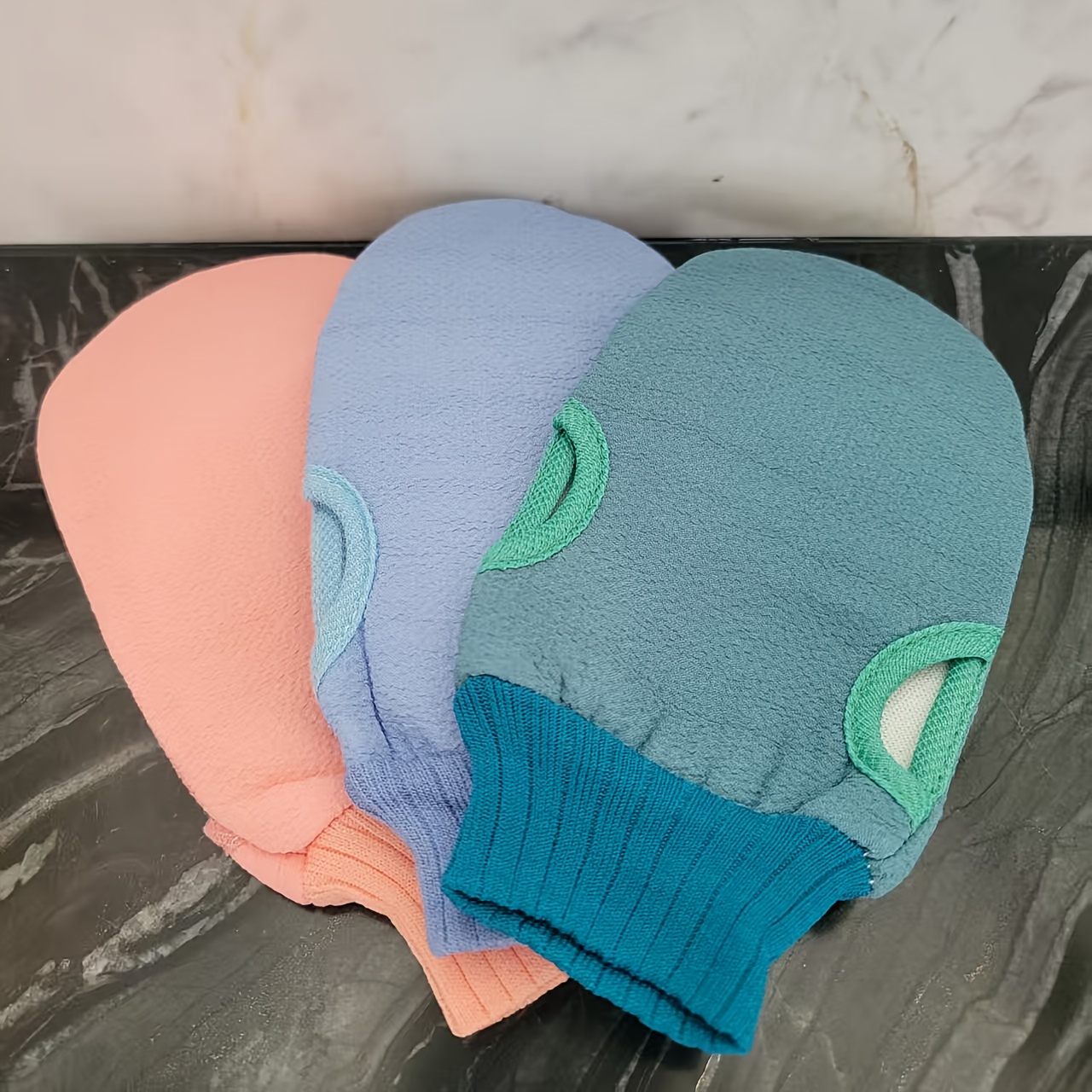 TEMU 3개 솔리드 컬러 각질 제거 장갑 양면 텍스처 목욕 스크러버 두꺼운 각질 제거 샤워 장갑 개방형 손가락 청소 도구