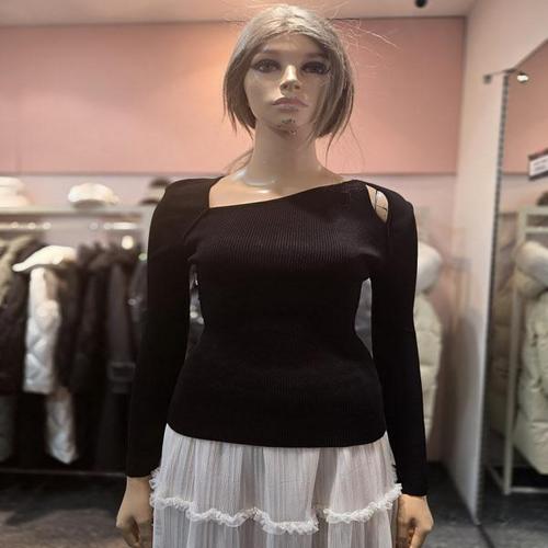[에고이스트][에고이스트] 언발 넥라인 포인트 슬림핏 골지 니트 ER1KL-260 (P003758604)