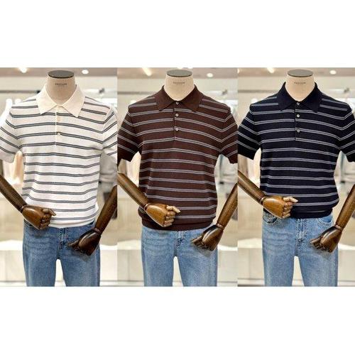 갤러리아_에디션 26S/S 남성 여름 멀티 스트라이프 카라넥 워셔블 니트 NE