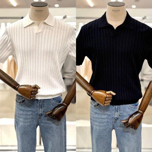 갤러리아_에디션 26S/S 남성 여름 리브드 오픈카라넥 니트 NEG2ET1924 2종