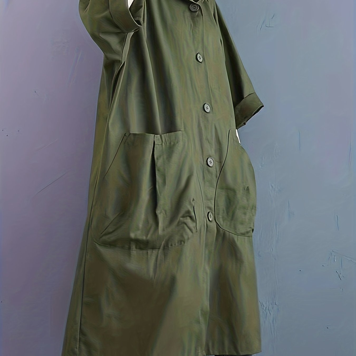 TEMU 일본 스타일 루즈핏 트렌치 코트, 큰 포켓과 긴 칼라