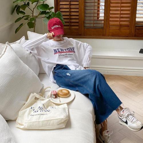 [다잇템]여자 진 데님스커트 에이라인 중간 하프 스커트
