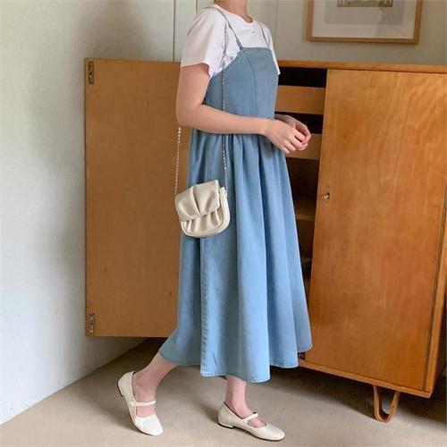 [다잇템]여자 스퀘어넥 진 면원단 에이라인 원피스 (10953910A)