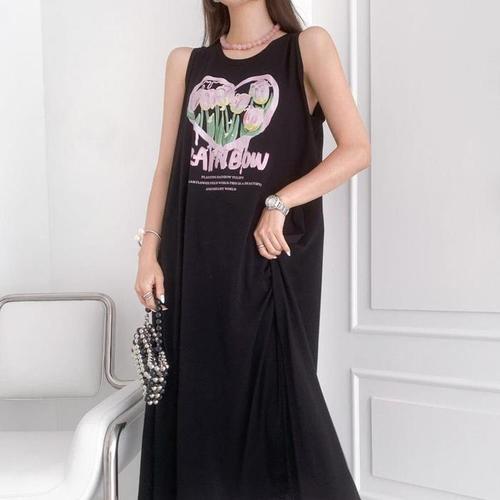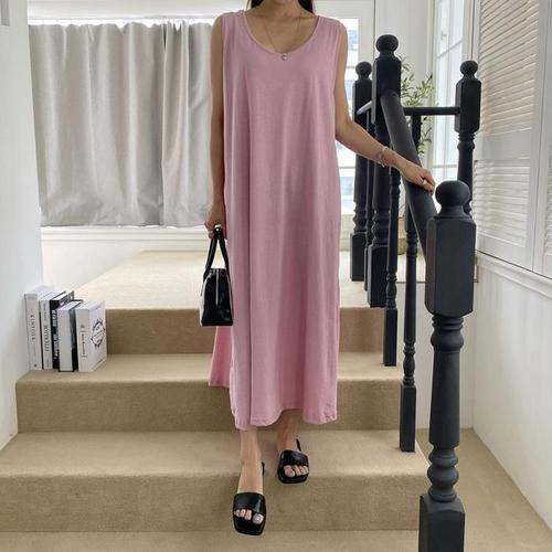 [다잇템]여자 V넥 슬리브리스 에이라인 롱 원피스 (10365917A)