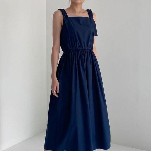[다잇템]여자 리본보우 슬리브리스 에이라인 롱원피스 (10325725A)