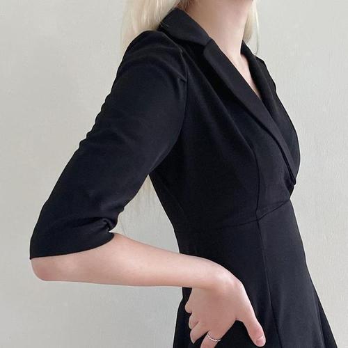[다잇템]여자 FW 에이라인 출근룩 셔츠형 검정 롱원피스 (11144287A)