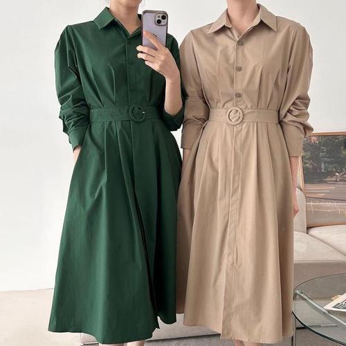 [다잇템]여자 에이라인 반팔셔츠 슬림 혁대 롱원피스 (10118156A)