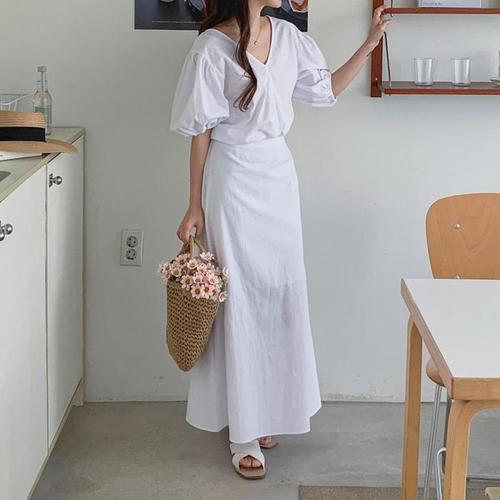 [다잇템]여자 여름하객룩 에이라인 민무늬 롱스커트 (10381049A)