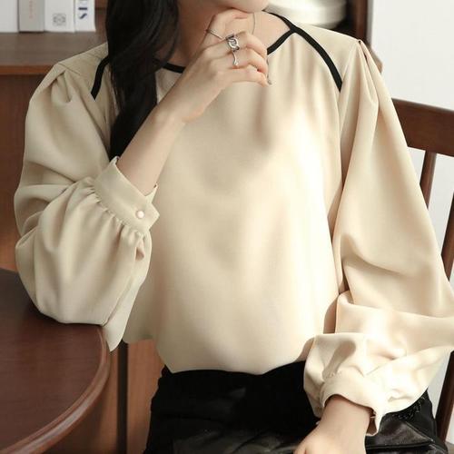레트로 우드 엣지 버블 슬리브 셔츠 여성용 루즈핏 플리츠 얇은 스윗 안티에이징 돌탑 패셔너블 캐주얼 셔츠