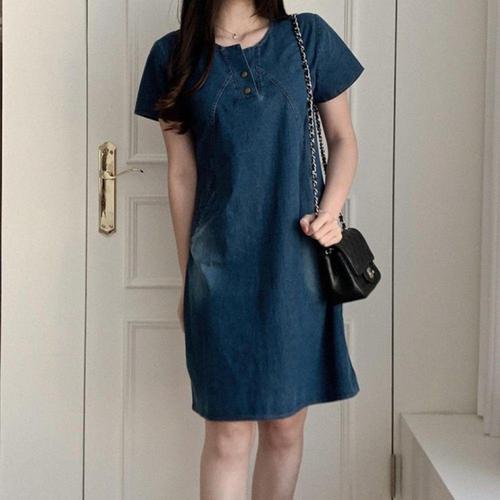 [오너클랜]인기상품 여성용 중청 데님 미디 반팔 원피스 여름 캐주얼 치마 드레스 [WFLKWT3_260304]