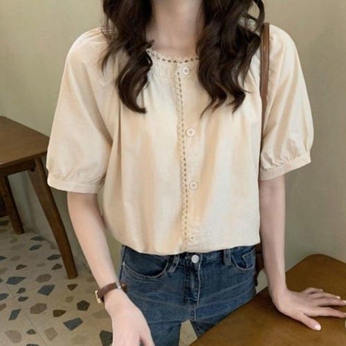 [오너클랜]인기상품 여성용 여름 레이스 반팔 셔츠 캐주얼 퍼프 블라우스 [WFLLLTP_260305]