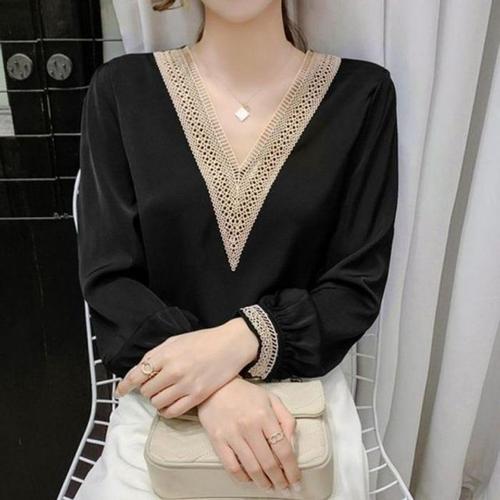 [주식회사 브이와이][JHQRLTM4_4B]여성 브이넥 레이스블라우스 가을 긴팔 여름 (23860046A)