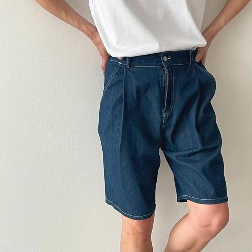 [다잇템]여자 썸머 핀턱 와이드핏 하프 청반바지 (29414633A)