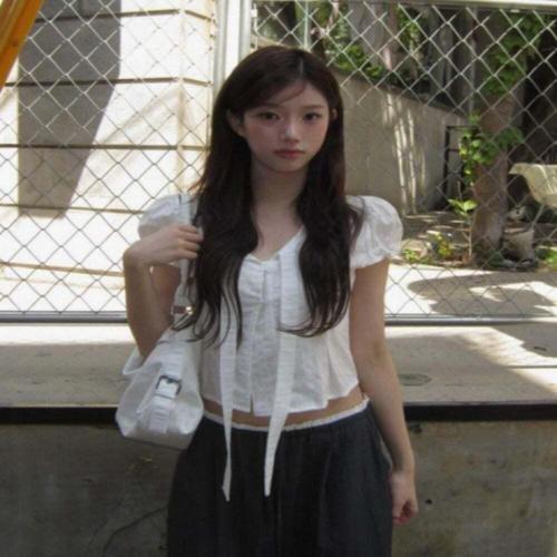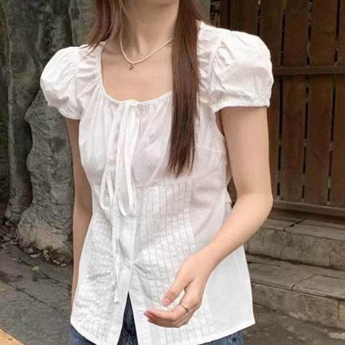 [오너클랜]인기상품 퍼프 반팔 여성 블라우스 리본 장식 여름용 [WFLL9Z5_260304]