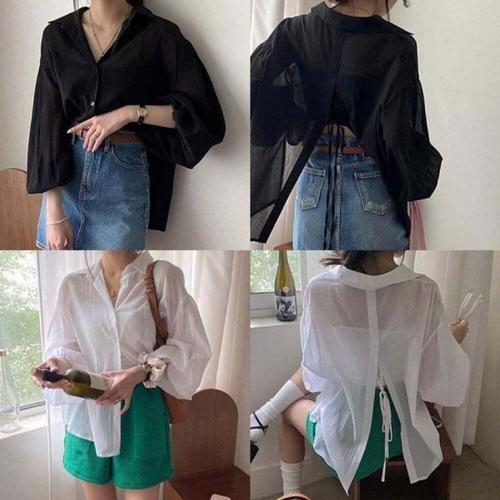 [오너클랜]인기상품 여름용 시스루 긴팔 무지 블라우스 리본 포인트 [WFLHZNL_260227]
