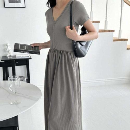 [오너클랜]인기상품 여름용 심플 반팔 롱 원피스 데일리 캐주얼 A라인 드레스 [WFLLB5Z_260304]