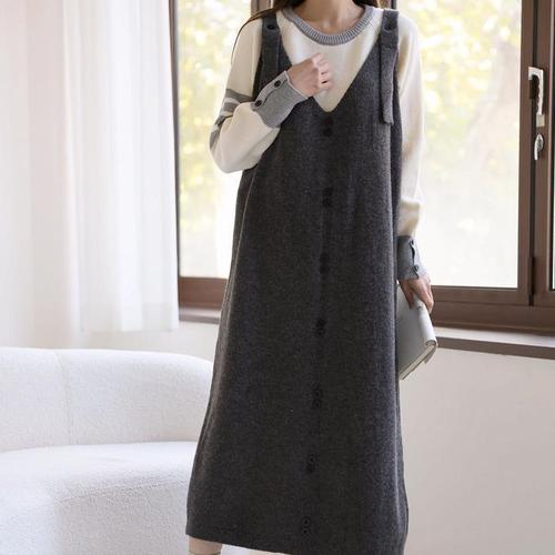 [다잇템]여자 서스펜더 투버튼 겨울데이트룩 롱원피스 (27470094A)
