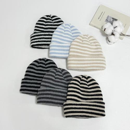 [다잇템]여자 줄무늬 투컬러 남자 겨울모자 비니 (28273982A)
