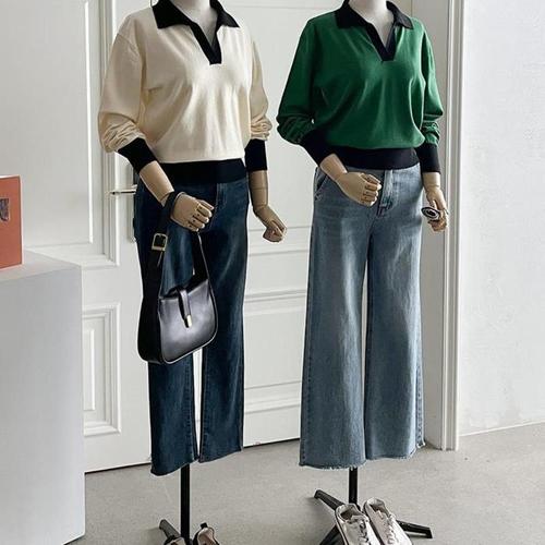 [다잇템]여성 콘트라스트 클래식 색상 롱슬리브 니트 (11097159A)