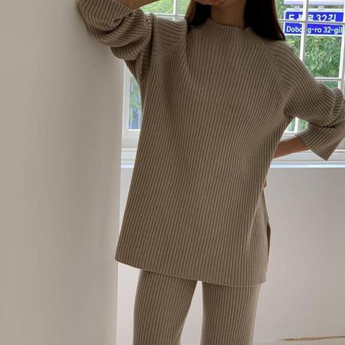 [다잇템]여자 빅사이즈 롱니트 사이드슬릿 세트 (11149154A)