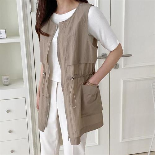 봄 가을 빅 민소매 조끼 오피스룩 정장 롱조끼 여성조끼 베이지 M 40~50kg