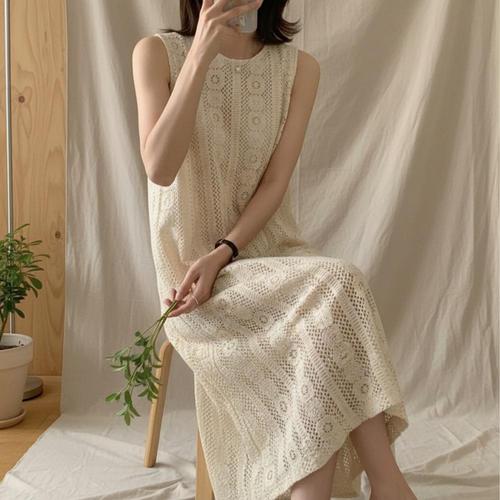[옷자락] 여성 여름 레이스 시스루 롱 나시 원피스