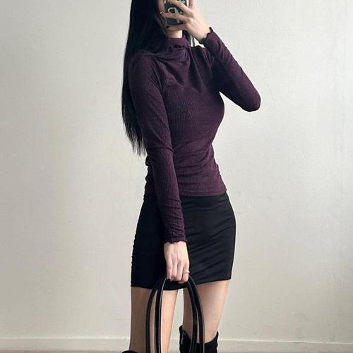 [다잇템]여자 벌룬 소매 목티 민무늬 하이넥 긴팔티셔츠 (9051377A)