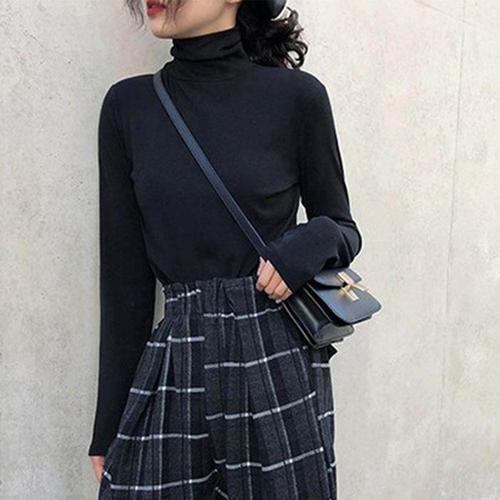 [다잇템]여자 얇은 하이넥 클래식 FW 무지 목티 티셔츠 (9290711A)