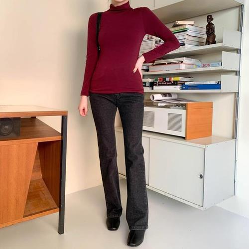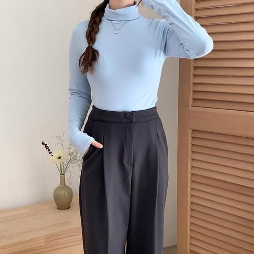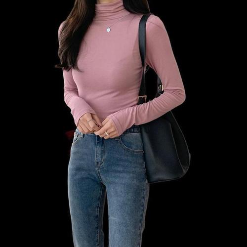 [다잇템]여자 무지 목티 클래식 얇은 하이넥 티셔츠 (29263925A)