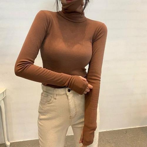이즈리엘 여자 가을 겨울 이너 니트 반목폴라 무지 긴팔 티셔츠