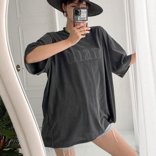 [다잇템]여자 SS 필기체 남자 얇은 캐쥬얼 반팔티 (10325631A)