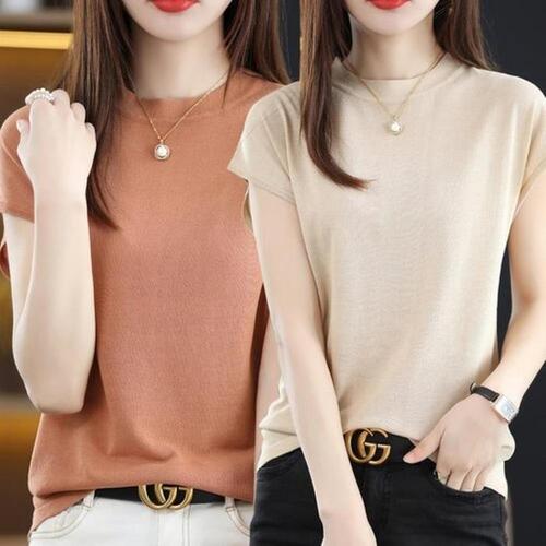 [다잇템]여자 스웨터 U넥 얇은 4컬러 반소매 티셔츠 (10646900A)