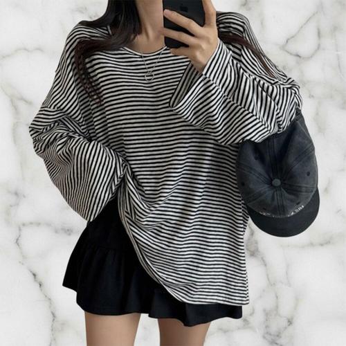 [미라클세븐]여성용 스트라이프 긴팔 티셔츠 박시핏 힙커버 얇은 스타일