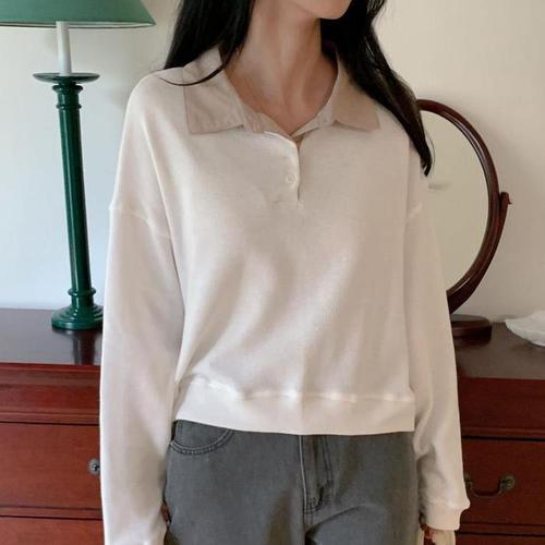 [다잇템]여자 배색카라 FW 카라티 단추 얇은긴팔 티셔츠 (11099324A)