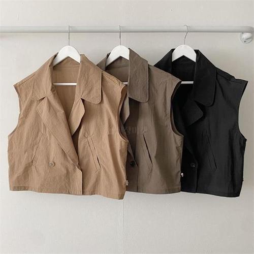[다잇템]여자 조끼 봄여름 단추 야상 바스락 카라 조끼 (9990097A)