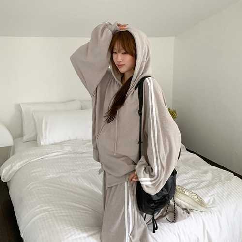 옷자락 / 여성 레이온 트레이닝 오버핏 와플 후드 집업