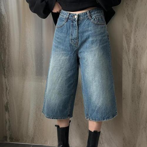 여자 논스판 칠부 와이드핏 워싱 버뮤다데님 청반바지_3