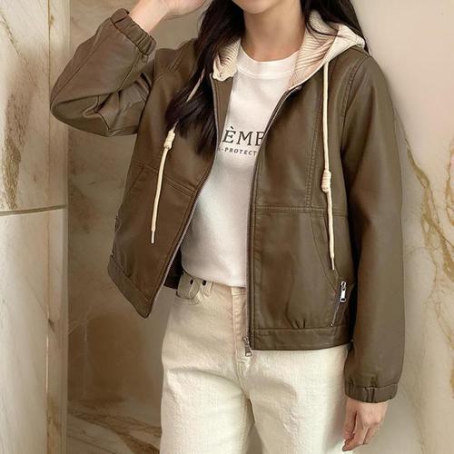 [옷자락]여성 루즈핏 스탠드카라 크롭 가죽점퍼